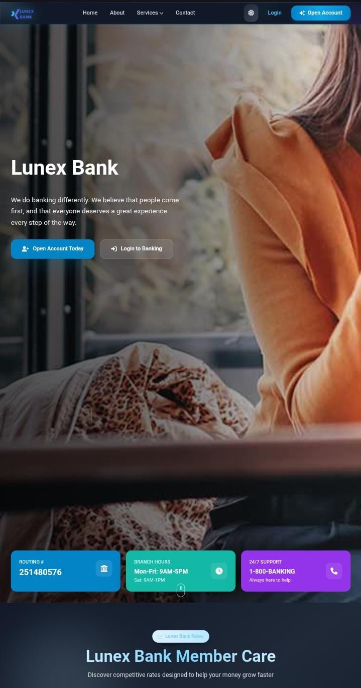 IRS-enabled banking script for registration, applications, and compliance-focused services.